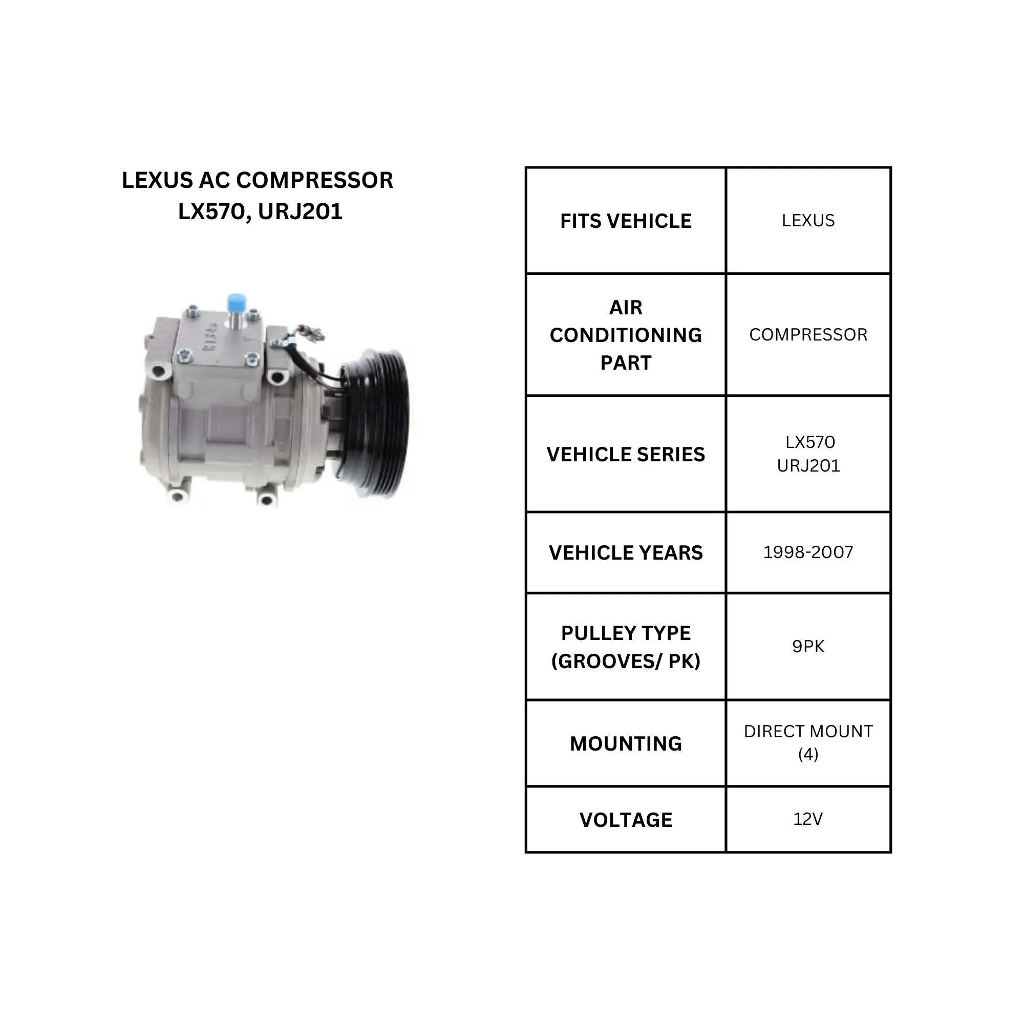 LEXUS COMPRESSOR VDJ200 URJ202 10SR19C R19C-9 9PK DIRECT MOUNT (4) 12V